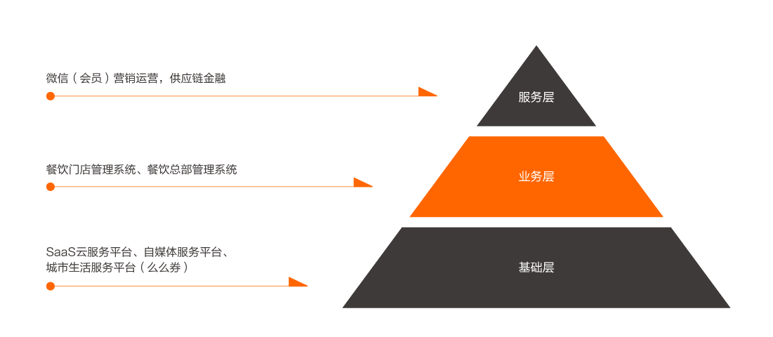 平臺(tái)提供餐飲企業(yè)運(yùn)營(yíng)管理所需要的全案信息化支撐系統(tǒng),以業(yè)務(wù)層獲取的基礎(chǔ)數(shù)據(jù),為餐飲企業(yè)提供專業(yè)化的運(yùn)營(yíng)服務(wù)。